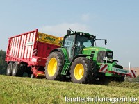 Die Anwendung der Traktor-Geräte-Automatisierung mit einem Pöttinger Ladewagen wurde ebenfalls mit einer Silbermedaille ausgezeichnet. Dabei steuert ein an der Vorderseite des Traktors montierter Schwadscanner die Geschwindigkeit des Gespanns je nach anfallender Erntegutmenge, damit die Pickup des Ladewagens jederzeit gleichmäßig beschickt werden kann. Wird das Schwad „dünn“, fährt der Traktor mit stufenlosem Getriebe automatisch schneller, ist viel Erntegut aufzunehmen, fährt der Traktor entsprechend langsamer.