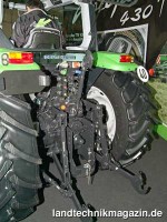 Neu beim Agroplus TTV 430 ist auch die Kabine, die Deutz-Fahr mit Dachfenster und ohne B-Holme konsequent als Freisichtkabine ausgelegt hat. Die Differenzialsperren werden beim Agroplus TTV 430 hydraulisch betätigt. Im Heck bietet der Agroplus TTV 430 wahlweise die Zapfwellengeschwindigkeiten 540/540E/1000 U/min oder 540/1000 U/min plus Wegzapfwelle. Die Hubkraft der Heckhydraulik gibt Deutz-Fahr mit 3.600 kg, die Förderleistung des Open-Center-Hydrauliksystems mit 60 l/min an.
