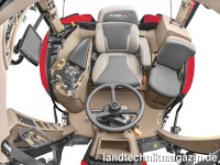 Case IH will mit den neuen Versum CVXDrive Traktoren Ausstattungs- und Komfortmerkmale von Großtraktoren mit kompakten Abmessungen verbinden. Zu dieser Strategie passt auch das CCLS-Hydrauliksystem mit Load-Sensing-Pumpe, die nach Herstellerangaben eine maximale Förderleistung von 110 l/min bietet. Mechanisch oder elektrohydraulisch betätigte Zusatzsteuergeräte mit bis zu sieben Anschlüssen – davon maximal vier im Heck und drei im Zwischenachsbereich – sowie eine Power-Beyond-Anschluss stehen beim Versum CVXDrive zur Verfügung. Die maximale Hubkraft des per EHR gesteuerten Heckkrafthebers beziffert Case IH für alle Modelle mit maximal 5.600 kg, die Hubkraft über den gesamten Hubbereich bei 610 mm Abstand nach OECD mit 4.200 kg. Ein Fronthubwerk mit nach Herstellerangaben maximal 2.300 kg Hubkraft ist ebenso als Wunschausstattung verfügbar wie eine Frontlader-Vorrüstung zur Montage eines Case IH LRZ 120 Frontladers. Das Fronthubwerk wird übrigens von einem neuen Multifunktions-Vorderachsbock aufgenommen, der eine vollständige Integration des Krafthebers in die Traktorkonstruktion erlaubt. Sowohl beim Front- als auch beim Heckhubwerk können Kund*Innen zwischen Schnellkupplern der Kategorie 2 oder 3N wählen.