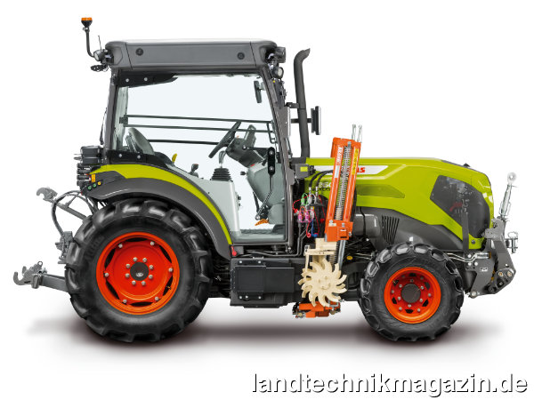 Als weitere Neuheit bei den NEXOS 200 COMFORT nennt Claas die Möglichkeit, ab Reihenweiten von 1,70 m Mittelachsanbaugeräte zu nutzen. Insbesondere die gängige Anbaugeräte für die mechanische Unkrautbekämpfung unter und zwischen Weinstöcken lassen sich so jetzt mit den Claas Schmalspurtraktoren verwenden. Dabei ist auch eine zeit- und kraftstoffsparende Kombination mit weiteren Anbaugeräten in Front und Heck möglich.