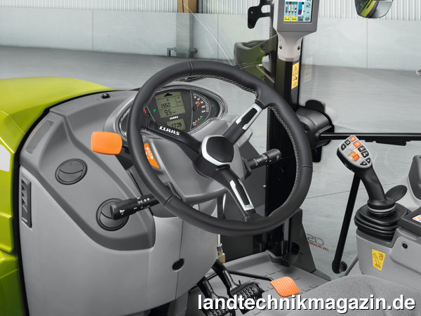 In der Kabine der neuen Claas ARION 400 ist der stoffbezogene Traktorsitz standardmäßig luftgefedert und kann gegen Aufpreis durch einen niederfrequenzgefederten Traktorsitz oder durch einen beheizten Komfortsitz (Grammer Dual Motion) ersetzt werden. Neu ist die Möglichkeit, statt des Standard-Lenkrades ein Leder-Lenkrad zu bestellen. Die Klimaanlage zählt zur Serienausstattung, eine Klimaautomatik gibt es optional für verschiedene Modelle. Für die Bedienung der neuen Claas ARION 400 stehen die drei Ausstattungspakete Standard, CIS und CIS+ zur Wahl. Das Standard-Paket umfasst den Multifunktionsgriff, die CIS Ausstattung zusätzlich einen schwarz-weiß Arbeitsmonitor im rechten A-Holm und CIS+ einen Farbmonitor im A-Holm.
