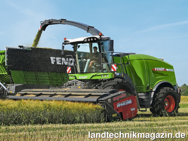 Mit dem neuen Katana 850 betritt Fendt das Feldhäcksler-Leistungssegment oberhalb von 800 PS. Konkret leistet der Liebherr 18-Liter-Sechszylinder-Motor im neuen Katana 850 laut Fendt 623/847 kW/PS. Für eine hohe Durchsatzleistung wurde für den Katana 850 laut Fendt der Gutfluss optimiert. Passend dazu kann der Fendt Katana mit dem zwölfreihigen Kemper Mais-Vorsatz 490plus ausgestattet werden.