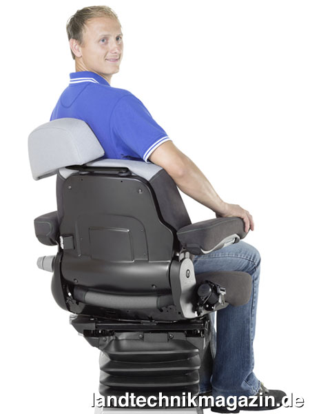 Grammer hat sich dieses Problems angenommen und einen Sitz entwickelt, bei dem sich der obere Teil der Rückenlehne beim Drehen automatisch an die Haltung des Fahrers anpasst. Erstmals ist damit nach Herstellerangaben ein System auf dem Markt, bei dem der Fahrer während des Beobachtens der Anbaugeräte am Heck durch den Sitz abgestützt wird, die Belastung infolge der Zwangshaltung lässt sich auf diese Weise minimieren. Die Weltneuheit aus dem Hause Grammer setzt damit nach Firmenangaben im Hinblick auf die Entlastung des Fahrers neue Maßstäbe. Die adaptive Rückenunterstützung verhindere eine vorzeitige Ermüdung des Muskelapparates, da die Muskelaktivität um bis zu 30 Prozent gegenüber einem Fahrersitz ohne adaptive Rückenunterstützung reduziert sei. Darüber hinaus werde der Sitzkomfort beim Fahren in gedrehter Haltung deutlich erhöht.