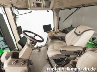 Die drei neuen 9RX-Raupenschlepper stattet John Deere mit der neuen CommandView-4-Plus-Kabine aus, die einen deutlich gesteigerten Komfort, eine bessere Sicht sowie eine wesentlich größere Kabinenfläche bieten soll. Sie verfügt unter anderem über eine neue Kabinenaufhängung mit drei Freiheitsgraden, die in Kombination mit einem isolierten Hilfsrahmen Lärm und Vibrationen reduzieren soll. Als weiteres Komfort-Merkmal nennt John Deere die ACS-Lenkung (ActiveCommand Steering), die die Lenkkraft an die Fahrgeschwindigkeit anpasst. Ebenso wird die Übersetzung der Lenkung angepasst, so dass auf dem Feld 3,5 und auf der Straße 5 Lenkrad-Umdrehungen von Anschlag zu Anschlag erforderlich sind.