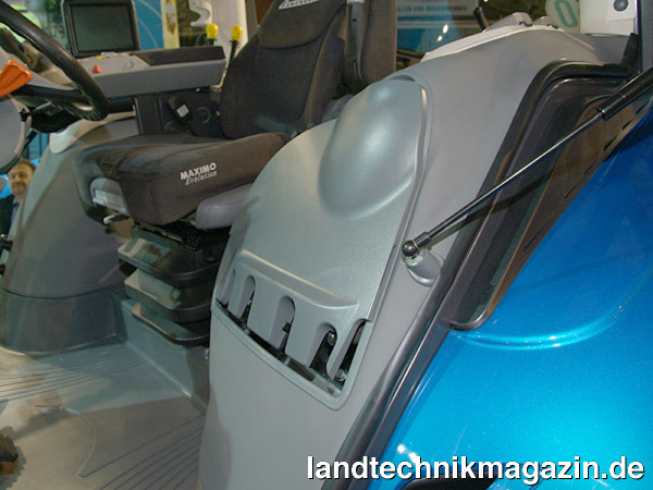 Bleibt abschließend noch zu erwähnen, dass Landini die Kabine der kompletten Serie 6 und 7 geringfügig überarbeitet hat. Neu sind hier jetzt serienmäßig ein Innenspiegel, ein Flaschenhalter am rechten B-Holm, ein Dachlukenrahmen sowie bei V-Shift und Roboshift Dynamic zusätzliche 12-V-Steckdosen für den Anschluss tragbarer Geräte.