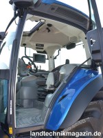 Komplett neu entwickelt hat Landini die Vier-Holm-Kabine für die Serie 6RS. Das Panoramafenster im Dach (inklusive Sonnenrollo und Antibeschlag-Lüftungsdüsen!) wurde deutlich vergrößert und es gibt eine kleine Dachluke als zusätzliche Be- beziehungsweise Entlüftungsmöglichkeit. Optimiert hat Landini nach eigenen Angaben die Lenkradeinstellung. Ein nettes Detail ist das Smartphone-Anlagefach nebst zwei USB-Ladebuchsen. Angenehm fällt auf, dass aus der Kabine heraus durch die einteilige Frontscheibe ein ungehinderter Blick auf die Vorderräder gegeben ist, da Landini die komplette Abgasnachbehandlung unter der Motorhaube angeordnet hat, so dass kein voluminöser Auspufftopf die Sicht behindert. Die Bedienelemente verteilen sich auf die neu gestaltete rechte Seitenkonsole und die serienmäßige Bedienarmlehne am luftgefederten und drehbaren Sitz. In der Armlehne befindet sich – neben Bedienelementen für Heckkraftheber, Handgas, etc. – auch der neue SmartPilot beziehungsweise SmartPilot Plus Multifunktionsjoystick. Der SmartPilot Joystick dient der Bedienung von Lastschaltung, Wendegetriebe, Drehzahlspeicher, Vorgewendemanagement (MyHMF), Heckkraftheber (Heben/Senken) und Heckzapfwelle. Beim SmartPilot Plus Multifunktionsjoystick kommen noch – abhängig von der Ausstattung des Schleppers – die Bedienung von Hecksteuergeräten, Frontkraftheber und Frontlader als weitere Funktionen hinzu. Serienmäßig ist bei der Serie 6RS die manuelle Klimaanlage, eine Klimaautomatik gibt es ebenso als Option wie einen klappbaren, gepolsterten Sozius. Weitere Wunschausrüstungen sind eine mechanische Kabinenfederung, ein 12-Zoll-Touchscreen-Monitor, ISOBUS inklusive des entsprechenden Anschlusses außen hinter der Kabine sowie Lenksysteme respektive die Vorbereitung für Lenksysteme in verschiedenen Genauigkeitsstufen. Bis zu zehn Arbeitsscheinwerfer in Halogen-Ausführungen sind möglich, beim LED-Lichtpaket gibt es bis zu 14 Arbeitsscheinwerfer.