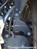 Angetrieben werden die neuen Landini Serie 6RS Traktoren von FPT-Vierzylinder-Motoren des Typs NEF 45 mit 4,5 l Hubraum, die mittels Hi-eSCR-2-Abgasnachbehandlunssystem die Vorgaben der Abgasnorm EU Stufe V respektive Tier 4 final erfüllen. Wie bei Landini leider üblich, gibt es keine Angaben zur Nennleistung der Motoren. Als Maximal-Leistung bei einer Motordrehzahl von 1.800 U/min nennt der Hersteller (nach 97/68/EG – ISO TR 14396) 92/125 kW/PS für den 6-135 RS, 100/135 kW/PS für den 6-145 RS und 106/145 kW/PS für den 6-155 RS. Mit Motormanagement EPM steigt die Maximal-Leistung laut Landini (nach 97/68/EG – ISO TR 14396) auf 100/135 kW/PS beim 6-135 RS, 106/145 kW/PS beim 6-145 RS und 114/155 beim 6-155 RS. Das maximale Drehmoment bei einer Motordrehzahl von 1.400 U/min wird mit 520 Nm für den 6-135 RS, 551 Nm für den 6-145 RS sowie 600 Nm für den 6-155 RS angegeben, mit EPM lauten die Werte 551 Nm, 610 Nm respektive 630 Nm. Die Kapazität des Diesel-Tanks beziffert Landini mit 220 l, die des AdBlue-Tanks mit 23 l. Angeordnet sind beide Tanks gemeinsam vor dem linken Kabinen-Aufstieg.