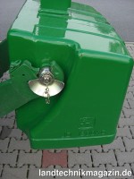 Die Koffergewichte der Kategorie 3N mit 1.500 kg und 1.800 kg für die Aufnahme in der Fronthydraulik von John Deere Traktoren haben hierzu eine neue Kontur erhalten. Ohne vorherige exakte Ausrichtung ermöglicht ihr Zuschnitt nach Herstellerangaben die gezielte Hinführung zu den Unterlenkerfanghaken und Unterlenkerkugeln. Damit muss der Fahrer den Traktor nur noch verlassen, um den Oberlenker des Frontkrafthebers zu befestigen.