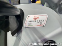 Womit wir auch schon bei der extravaganten Gestaltung des Konzepttraktors T5.120 »Il Trattore« anlangen: neben der auffälligen grün-roten Lackierung fällt sofort die Form der Motorhaube, des senkrechten Kühlergrills mit Fiat-Grafik und der seitlich angebrachten, runden Scheinwerfer ins Auge. Genauer hinschauen muss man, um die Detailverliebtheit zu erkennen, die sich durch den lederbezogenen Werkzeugkasten und das angeschraubte Typenschild Bahn bricht. Das cognacfarbene Leder, mit dem Sitz, Sozius und Lenkrad bezogen wurden, schaffen eine wohlige Atmosphäre der Nostalgie, die das Vorbild vermissen lässt - allerdings sind Ledersitze ohne Kabine auch keine besonders gute Idee...
