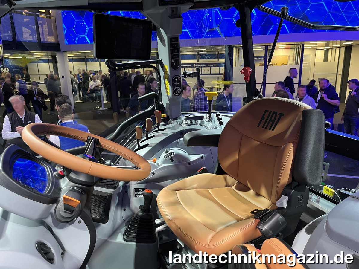 Die maximale Geschwindigkeit soll 40 km/h betragen, die Hydraulik arbeitet mit einer 64 l/min-Pumpe, die sich auf Wunsch durch die MegaFlow-Pumpe mit 82 l/min eretzen lässt und die Heckhubkraft beträgt 4.700 kg. Um neuesten Entwicklungen Rechnung zu zollen, ist »Il Trattore« mit Terraglide-Vorderachsfederung, dem IntelliView 12 Display, FieldOps Connectivity und dem CustomSteer System ausgerüstet, mit dem die Anzahl der jeweils erforderlichen Lenkradumdrehungen verringert werden kann. Allerdings: Dieses lederbezogene Lenkrad möchte man doch den ganzen Tag drehen.