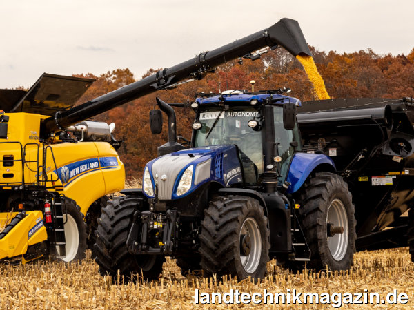 Der fahrerlose T8 mit Raven Autonomy kann beim Überladen von der Kabine des Mähdreschers aus überwacht und bedient werden. Im System kann ein Feldplan erstellt, Standorte abgesteckt, die Geschwindigkeit des Traktors angepasst und die Aktivitäten vor Ort überwacht werden. Die automatische Synchronisierung von Mähdrescher und Anhänger verhindert New Holland zufolge, dass beim Entladen etwas verschüttet wird. Wenn der Anhänger gefüllt ist, begibt sich der Traktor autonom zu einem vorher festgelegten Entladebereich – der gesamte Vorgang wird ohne eine zweite Person durchgeführt. Das intuitive System unterstützt bei der effizienten Verwaltung des Fuhrparks, indem es die Reichweite der Mähdrescher in Echtzeit verfolgt, die Leistung von Traktor und Mähdrescher analysiert, den Kraftstoffstatus und die Betriebszeit ermittelt und die Standorte sämtlicher Maschinen in Echtzeit überwacht. Alle Daten werden auf einer cloudbasierten Plattform gesichert und gespeichert.