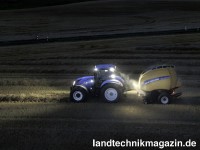 New Holland unterstreicht besonders die 5,85 m² große einteilige Frontscheibe und das Top-View-Fenster für Frontlader-Arbeiten. Im Zusammenhang damit seien auch die serienmäßigen 8 LED-Arbeitsscheinwerfer erwähnt, die es zusammen laut New Holland auf 10.000 Lumen bringen. Optional lässt sich ein Beleuchtungspaket bestellen, das insgesamt 31.200 Lumen bereitstellt.