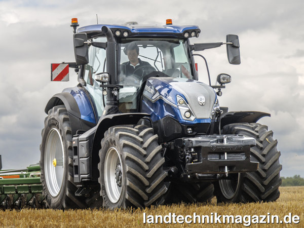 Die neuen T7 SWB sind die ersten New Holland Traktoren, die in der neuen Farbe „Dynamic Blue“ angeboten werden – andere Baureihen sollen später folgen. Auffällig ist außerdem die neue, schräg abfallende Motorhaube, die die Sicht nach vorn verbessert.
