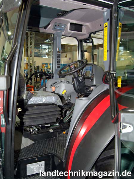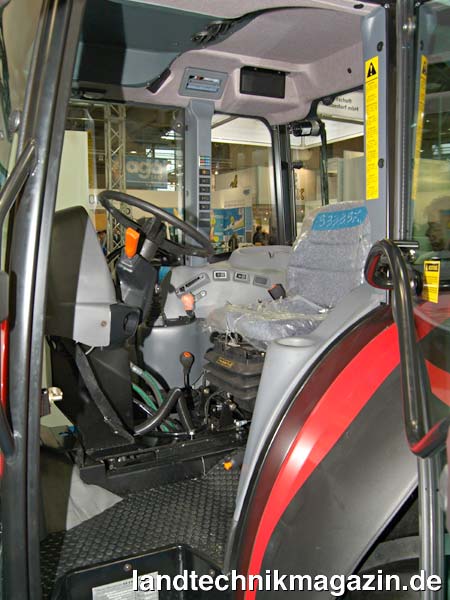 De Pietri bietet den Kompaktschlepper in den Ausführungen TR 100 DT/S und TR 100 DT/M an. In beiden Fällen wird der Schlepper von einem Iveco NEF 4-Zylinder-Turbomotor mit Ladeluftkühlung angetrieben, der die Abgasnorm TIER 3 erfüllt und dessen Leistung mit 73/100 kW/PS angegeben wird. Unterschiede gibt es hingegen im Bereich des Getriebes: Während der TR 100 DT/S über ein Getriebe mit 32 Vorwärts- und 16 Rückwärtsgängen, 2-fach Lastschaltung und lastschaltbarer Wendeschaltung verfügt, kommt im TR 100 DT/M ein 32/16-Gang-Getiebe mit mechanischem Untersetzer und synchronisierter Wendeschaltung zum Einsatz. Die übrige Ausstattung ist bei beiden Typen identisch. So verfügt der De Pietri TR 100 DT beispielsweise serienmäßig über eine elektrohydraulische Allradzuschaltung, elektrohydraulisch betätigte Differentialsperren mit 100% Sperrwirkung in Vorder- und Hinterachse, ein Integralbremssystem mit nassen Scheibenbremsen an allen vier Rädern, Klimaanlage und natürlich die Rückfahreinrichtung mit drehbarem Fahrerstand. Bei der De-Pietri-Rückfahreinrichtung sind der Sitz und die komplette Lenksäule mit Armaturenträger, Lenkrad sowie Kupplungs- und Bremspedal auf einer drehbaren Konsole montiert. Zwar muss man, bedingt durch die Drehkonsole, auf einen ebenen Kabinenboden verzichten, dafür erfolgt die Umrüstung von Vorwärts- auf Rückwärtsfahrt werkzeuglos und innerhalb weniger Sekunden: Zum Umdrehen des Bedienstandes muss lediglich die Verriegelung gelöst werden, anschließend wird der Sitz in Richtung Lenksäule geklappt und die komplette Einheit um 180° gedreht. Durch diese unkomplizierte Handhabung der Rückfahreinrichtung ergibt sich vor allem der Vorteil, dass die Umstellung problemlos unmittelbar vor dem eigentlichen Arbeitseinsatz vorgenommen werden kann, so dass der TR 100 DT nicht nur schnell an unterschiedliche Einsatzerfordernisse angepasst werden, sondern natürlich auch die Straßenfahrt in gewohnter Weise erfolgen kann. Durch die Rückfahreinrichtung eignet sich der TR 100 DT selbstverständlich nicht nur als wendiger Mähschlepper vor allem in alpinen Regionen, sondern auch für zahlreiche Aufgaben bei denen es auf eine optimale Sicht auf das Anbaugerät ankommt oder die Wendigkeit einer hinterradgelenkten Maschine vorteilhaft ist, wie etwa im kommunalen Bereich zum Mähen von Böschungen, für die Grünflächenpflege oder den Winterdienst.