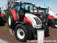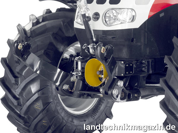 Ein neues Design erhielt auch der Frontarbeitsraum. Das Fronthubwerk mit der Frontzapfwelle (beides Option) ist, so Steyr, harmonisch integriert. Die schlanke Motorkonstruktion, der zentrale Antriebsstrang und ein Lenkeinschlag von 55 Grad sorgen nach Herstellerangaben für exzellente Fahreigenschaften und einen Wenderadius von nur 4,05 Meter.