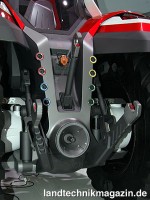 Und das Design? Zweifellos chic, wenngleich sich natürlich auch bei dieser Studie Elemente finden, die entweder deren Eignung für den praktischen Einsatz bezweifeln lassen oder die bei einer möglichen Serienproduktion dann leider doch dem Rotstift der gnadenlosen Gewinnoptimierer zum Opfer fallen werden. So oder so: Zumindest die wunderschön gezeichnete Motorhaube könnten wir uns auch bei den aktuellen Steyr-Traktoren-Serien vorstellen – oder besser: würden wir uns wünschen.