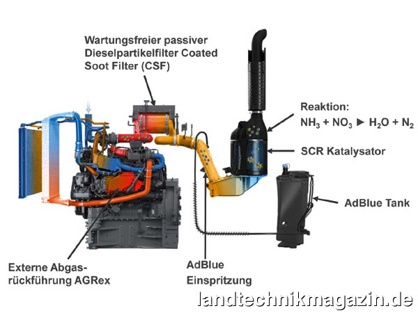 Um bei den neuen 800 und 900 Vario Traktoren die Abgasnorm EU Stufe 4/Tier 4 final einzuhalten, setzt Fendt eine Kombination aus SCR und passivem Dieselpartikelfilter (DPF) ein. Bei diesem Partikelfilter erfolgt die passive Regeneration ohne zusätzliche Einspritzung von Kraftstoff im Abgasstrang.