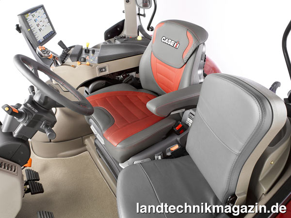 Wie eingangs erwähnt, gibt es bei der neuen Puma Generation neben der Motorisierung noch weitere kleinere Neuerungen. Diese finden sich allesamt im Bereich Kabine und Bedienung. So verfügt die Kabine jetzt über eine nahtlose einteilige Windschutzscheibe sowie ein überarbeitetes Kabinenexterieur mit neuem Kabinendach und neuen Beleuchtungspaketen. Bei den Arbeitsscheinwerfern bietet Case IH für den Puma jetzt auch zwei Pakete mit LED-Technologie an, die den Arbeitsbereich heller und weiter ausleuchten sollen. Neu im Kabineninneren ist die Auswahl an Fahrersitzen. Neben dem serienmäßigen Luftfedersitz mit Niederfrequenz-Federung sind wahlweise ein Dual Motion Niederfrequenz-Luftfedersitz der Premiumklasse mit innovativer höhenverstellbarer Rückenlehne und Stoffbezug beziehungsweise rotem Leder oder ein Maximo Evolution Ledersitz mit semiaktiver Federung erhältlich.