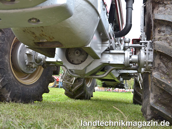 Absolutes Highlight bei den Vorführungen war zweifelsohne der legendäre Schlüter Profi Trac 5000 TVL im Einsatz mit einer 12 m breiten Horsch Joker 12 RT Kurzscheibenegge – die er mit seinen 500 PS Motorleistung aus 21 l Hubraum selbstverständlich mühelos über den abgeernteten Maisacker zog. Mehrere Euro Trac zeigten beim Maishäckseln mit Rückfahreinrichtung und verschiebbarem Ballastgewicht einerseits wie durchdacht dieses Schlepperkonzept angelegt war und andererseits, dass für eine schlagkräftige Maisernte nicht zwingend ein Selbstfahrhäcksler notwendig ist. Die Rückfahreinrichtung gab es natürlich nicht nur für den Euro Trac, so dass auch Traktoren der Baureihen Super und Super Trac mit dieser für den Häcksler-Einsatz vorteilhaften Ausstattung in Hallbergmoos zum Einsatz kamen. Dass es bei Traktoren in erster Linie auf die Leistung und weniger auf die Größe ankommt, zeigten wiederum einige Schlüter Compact sowohl beim Maishäckseln als auch bei der anschließenden Bodenbearbeitung. Insgesamt wurde – auch wenn auf Grund der Ausrichtung der Veranstaltung einige ältere Baujahre fehlten – bei den Feldvorführungen und auf dem Ausstellungsgelände das komplette Spektrum der Freisinger Produktion abgebildet, vom 13 PS starken ASL 130 bis zum 500-PS-Bolliden. Erwähnt werden sollten noch einige Besonderheiten, die es zu sehen gab: Neben einem Super Trac 2500 VL in Bundeswehr-Ausführung waren dies ein „Rheinbraun-Schlüter“ Super 3000 TVL, ein Profi Trac 2500 TVL im Einsatz mit einem Gassner 10-Schar-Drehpflug, ein Profi Trac 3000 TVL, der mit seinem 7-scharigen Pöttinger Servo Pflug leichtes Spiel hatte, ein Super 1500 V, Schlüters erster Schlepper mit 8-Zylinder-Motor, sowie ein Vertreter des einzigen Schmalspurschlepper-Modells von Schlüter. Darüber hinaus hatte ein seltener Li-Trac 300, mit dem Mali dereinst in die Fußstapfen Schlüters treten wollte, einen Gastauftritt auf dem Acker. Interessant ist, dass in Hallbergmoos keineswegs nur Sammlerstücke zu sehen waren, sondern doch überwiegend Traktoren die noch regelmäßig im landwirtschaftlichen Einsatz stehen und dafür teilweise auch mit GPS-Empfängern, ISOBUS-Terminals und sogar Lenksystemen für heutige Verhältnisse fit gemacht wurden. Die Fotos in der Bildergalerie zeigen einen kleinen Ausschnitt dessen, was am leider etwas verregneten Samstag in Hallbergmoos gezeigt wurde.