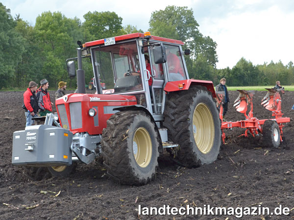 Ordentlich ballastiert machen die vergleichsweise leichten Schlüter Compact Traktoren – im Bild ein Compact 950 V6 – auch vor dem Pflug eine gute Figur.