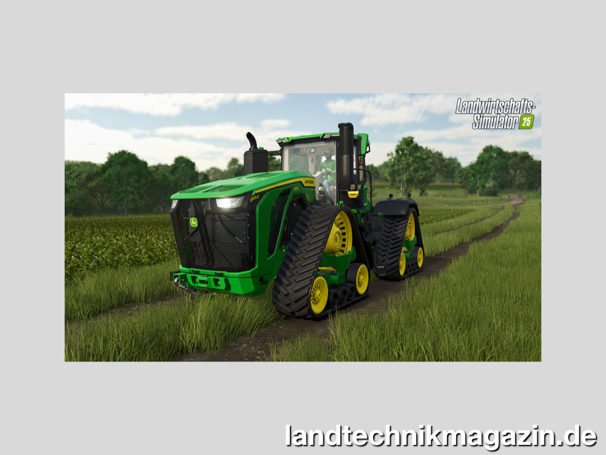 Mit dem John Deere 9RX 830, der Top-Konfiguration der 9RX Series, ergänzt GIANTS Software John Deeres aktuellen Top-Knicklenker mit vier Raupenlaufwerken, der erst im vergangenen Jahr auf realen Feldern debütierte. Ausgelegt für großflächige, zugkraftintensive Bodenbearbeitung, Aussaat und schwere Anbaugeräte, vereint er einen 18-Liter-Deere-Motor, eine Hochleistungshydraulik und ein schweres Fahrwerk mit hoher Traktion und ist damit der größte und leistungsstärkste Traktor im Landwirtschafts-Simulator 25.